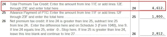 If you have more than one Form 1095-A, repeat and add them all. We only have one in our example.