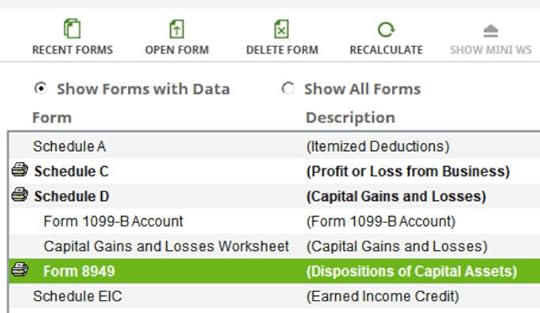 You can verify how much you are receiving a tax deduction. Click on Forms at the top. Double-click on Form 1040 and Schedules 1-3. Scroll down to Schedule 1 and look at line 17. That’s your self-employed health insurance deduction.