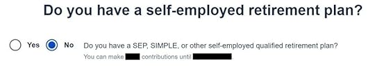 We didn’t contribute to a SEP, SIMPLE, or solo 401k plan in this example. Answer Yes if you did.