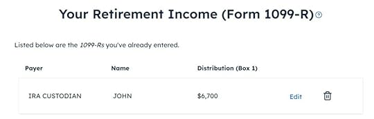 Click on Import 1099-R if you’d like. I show manual entries with “Enter Manually” here.
