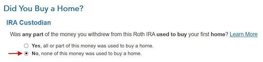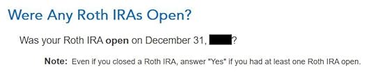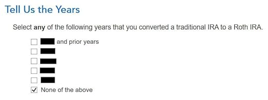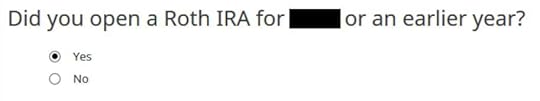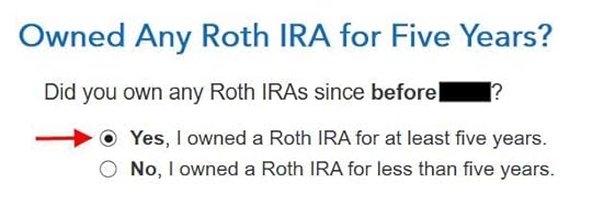 Here it’s asking whether I had my first Roth IRA at least five years ago. Of course I did.