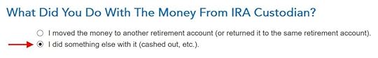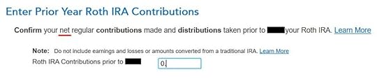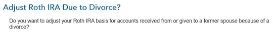 Now TurboTax will go through the rigmarole of Roth IRA distribution ordering rules, which are irrelevant when you’re already 59-1/2 and you had your Roth IRA for at least five years. I’m going to lie to TurboTax now because I know the answers just don’t matter at this point.