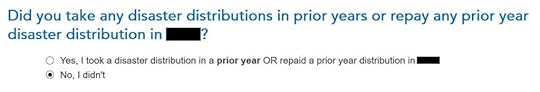 I didn’t take disaster distributions or repay them.