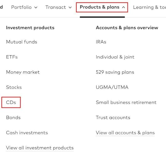 VanguardIt works similarly in a Vanguard brokerage account. Click on “Products & plans” and then “CDs” after you log in to your Vanguard account.
