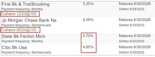 Because we must pay a commission when we buy a secondary CD, our net yield will be lower than the gross yield we see in the table. This makes it not worth the hassle to buy a secondary CD when the 4.75% rate isn’t much higher than the 4.7% rate on a new issue CD to begin with.