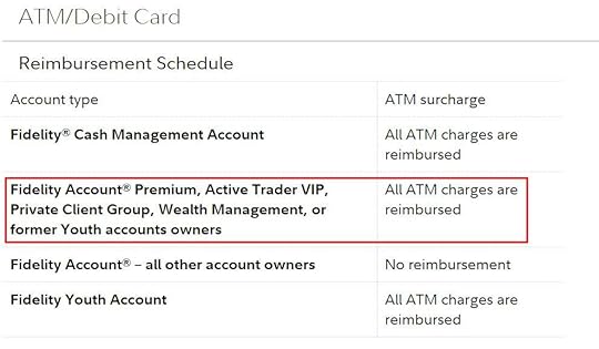 The ATM fee reimbursement is also included when you have Premium Services or Private Client Group status, which generally requires having $250k or more with Fidelity in all accounts. It doesn’t matter whether you have an assigned advisor.