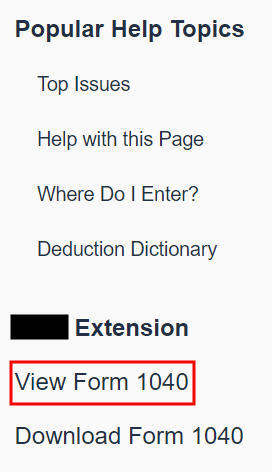 Click on “View Form 1040” on the right.