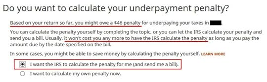 The IRS actually often doesn’t assess a penalty when the tax software thinks you owe a penalty. You don’t have to volunteer the penalty now.