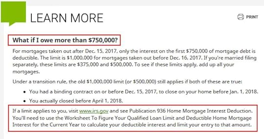 Table of ContentsLimit on DeductionAverage Mortgage BalanceTurboTaxH&R BlockFreeTaxUSALimit on DeductionThe Tax Cuts and Jobs Act of 2017 reduced the limit on the mortgage balance on which you can deduct the mortgage interest from $1 million to $750,000. The lower limit applies to homes acquired after December 15, 2017. The large increase in home prices in recent years makes recently bought homes in high-price areas more likely to exceed the $750,000 limit.