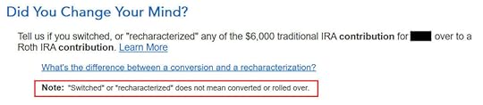 This is important. Answer No if you contributed to a Traditional IRA and converted to Roth. Answer Yes if you originally contributed to a Roth IRA, recharacterized it to Traditional, and then converted.