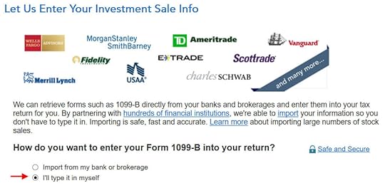 Import your 1099-B if you’d like. I’ll type it myself here.