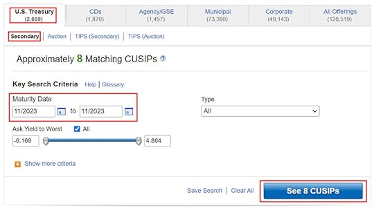 It’s easy to build this ladder with Treasuries through a combination of new issues and secondary market purchases. See How To Buy Treasury Bills & Notes Without Fee at Online Brokers and How to Buy Treasury Bills & Notes On the Secondary Market. You can build a ladder with CDs as well.