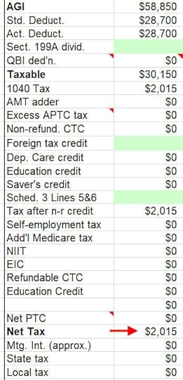 Case Study SpreadsheetMy favorite tool for this type of planning calculation is the Case Study Spreadsheet created by user MDM on the Mr. Money Mustache forum. Using downloaded tax software also works, but tax software for the current year usually doesn’t come out until November or December and it’s often incomplete pending updates at that stage. The Case Study Spreadsheet is updated much sooner.