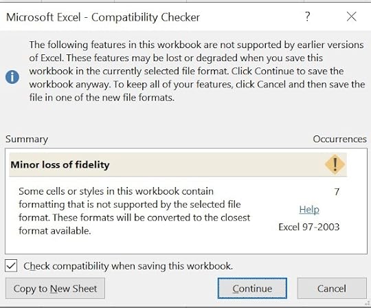 This is normal. Click on Continue and the spreadsheet will be saved.