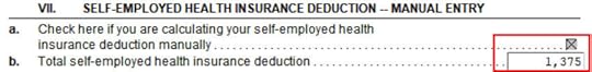 Which months you were self-employed determines how much counts as deductible self-employed health insurance. We were self-employed in all 12 months in our example.