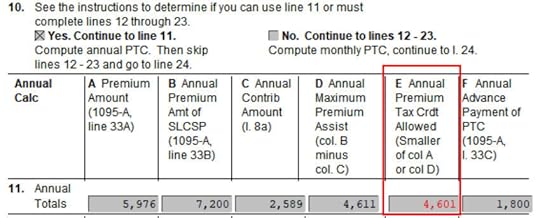 The software crunches the numbers. It says we are eligible for more premium tax credit than the advance subsidy the ACA healthcare marketplace already paid to the insurance company.