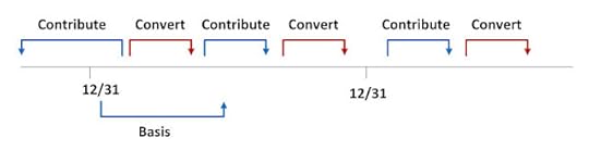 Split Tax ReportingWhen you contribute *for* one year and convert *during* a different year, you will have to split the tax reporting into two different years. You report the contribution on the tax return for the first year. You report the basis carried over from the first year and your conversion on the tax return for the second year. You will have to remember. The confusion is your penalty for doing it unplanned.