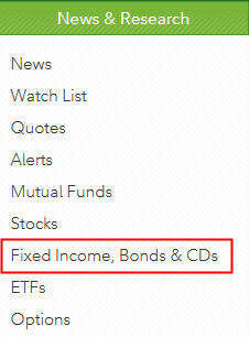 Under News & Research on the top, click on Fixed Income, Bonds & CDs.