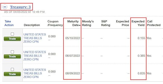 You’ll see a list of upcoming issues in the Treasury section. You’ll see the maturity date of each issue and the expected yield. The expected yield is only an estimate. You’ll know the actual yield only after your order executes but you can be sure you’ll always get the best yield determined by the market. Click on Trade to buy the issue you are interested in.