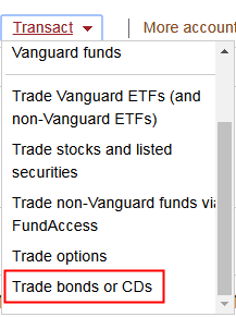 Click on the Transact dropdown next to your account and scroll to the bottom. Click on Trade bonds or CDs.