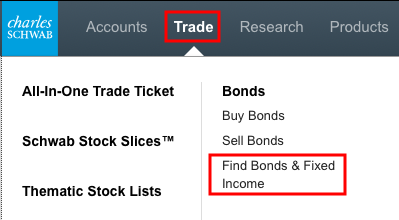 Click on Trade in the top menu and then Find Bonds & Fixed Income.