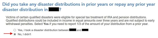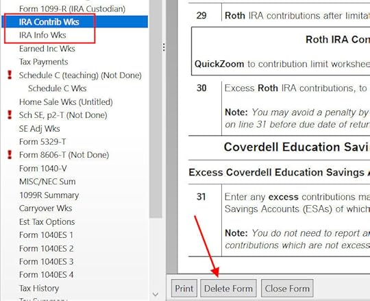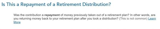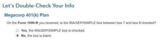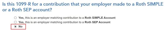 You are done with one 1099-R. Repeat the above if you have another 1099-R. If you’re married and both of you did a Backdoor Roth, pay attention to whose 1099-R it is when you enter the second one. You’ll have problems if you assign both 1099-R’s to the same person when they belong to each spouse. Click on Finished when you are done with all the 1099-Rs.