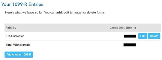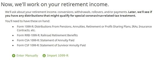 Click on Import 1099-R if you’d like. I show manual entries with “Enter Manually” here.