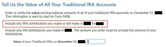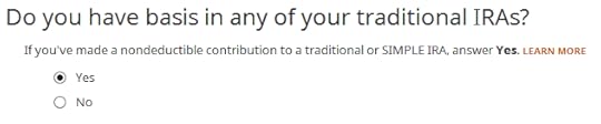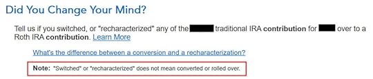 When you contribute for the previous year and convert (or recharacterize and convert in the following year), you have to report them on your tax return in two different years: the contribution in one year and the conversion in the following year. It’s more confusing than a straight “clean” backdoor Roth but that’s the price you pay for not knowing the right way. This post shows you how to report the contribution part in H&R Block for the first year. Split-Year Backdoor Roth in H&R Block, 2nd Year shows you how to do the conversion part for the second year.