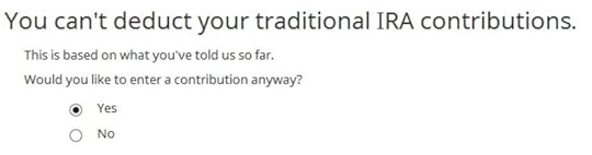 Contribution Is DeductibleIf you don’t have a retirement plan at work, you have a higher income limit to take a deduction on your Traditional IRA contribution. If you have a retirement plan at work but your income is low enough, you are also eligible for a deduction on your Traditional IRA contribution. The software will give you the deduction if it sees that your income qualifies. Unlike TurboTax, H&R Block software doesn’t give you the choice of making it non-deductible. You can see this deduction on Schedule 1 Line 20.