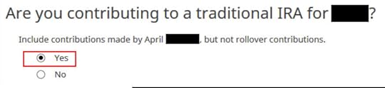 The “Are you contributing to …” wording isn’t exactly accurate when you already contributed but answer “Yes” anyway because you contributed to an IRA for the year in question.