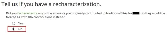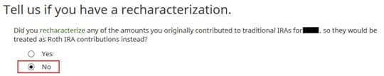 This is important. Answer No because you didn’t recharacterize. You converted to Roth.