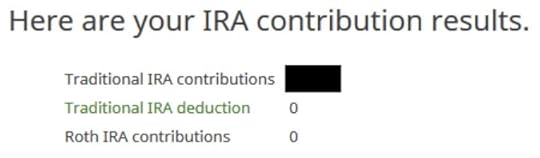The refund in progress drops a lot at this point. We went from a $2,434 refund to $946. Don’t panic. It’s normal and only temporary. It will come back up after we complete the section for IRA contributions.