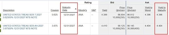I checked the Treasury yields near the expiration date. It was around 4.4%.
