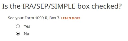 The “IRA/SEP/SIMPLE” box under Box 7 may or may not be checked. It’s not checked in our sample 1099-R.