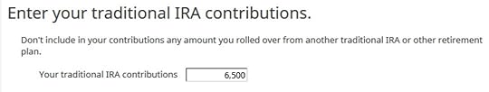 A summary of your contributions. 0 in Traditional IRA deduction means it’s nondeductible. Click on Next. Repeat for your spouse if both of you contributed to a Traditional IRA for the previous year.