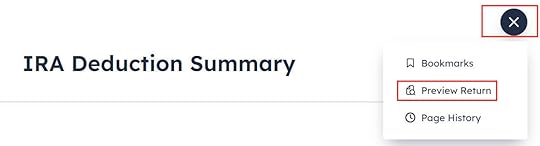 Taxable IncomeYou’re done with the 1099-R forms. Let’s look at how they show up on your tax return. Click on the three dots on the top right above the IRA Deduction Summary and then click on “Preview Return.”