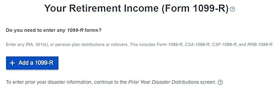 You’re done with the 1099-R form for the recharacterization. Click on the “Add a 1099-R” button to add the other 1099-R for the conversion.