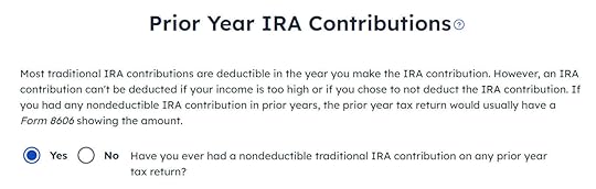 Answer “Yes” here because you had a Traditional IRA contribution from last year.