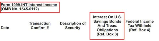 Table of ContentsInterest from Treasury Bills and NotesInterest from Savings BondsTreasuries in Mutual Funds and ETFsGovernment % from Fund ManagersVanguardFidelityCharles SchwabiSharesCA, NY, and CT ResidentsTax SoftwareTurboTaxH&R BlockFreeTaxUSAInterest from Treasury Bills and NotesWhen you buy individual Treasuries in a taxable brokerage account — see How To Buy Treasury Bills & Notes Without Fee at Online Brokers and How to Buy Treasury Bills & Notes On the Secondary Market — you’ll see the interest reported on a 1099-INT form and/or a 1099-OID form (for TIPS).