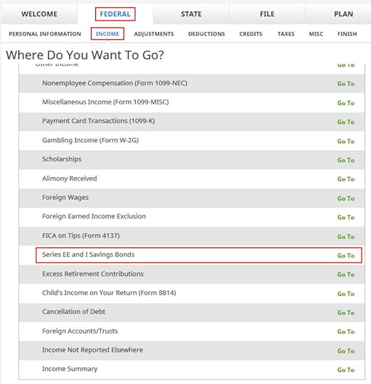 Interest from Savings BondsTreasuryDirect issues a 1099 form when you cash out savings bonds in your TreasuryDirect account. See Report I Bonds Interest in TurboTax, H&R Block, FreeTaxUSA for how to get the 1099 form and enter the interest in tax software.