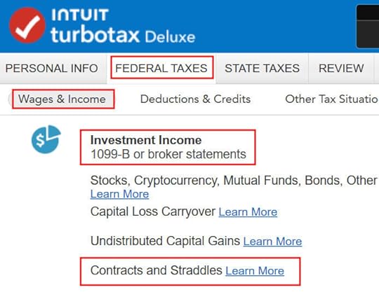 TurboTaxThe screenshots below are taken from TurboTax Deluxe downloaded software. The TurboTax downloaded software is both less expensive and more powerful than TurboTax online software. If you haven’t paid for your TurboTax online filing yet, you can buy TurboTax download from Amazon, Costco, Walmart, and many other places and switch from TurboTax online to TurboTax download (see instructions for how to make the switch from TurboTax).