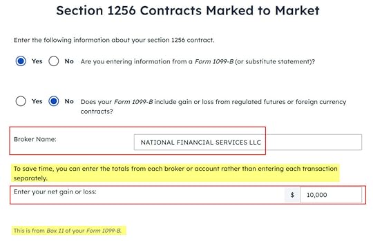 After saying we have a 1098 form and entering the name of the lender, we come to this form to enter the numbers on the 1098 form.