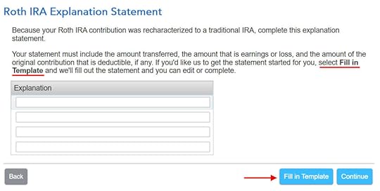 The IRS wants a statement to explain the recharacterization. Click on “Fill in Template.”
