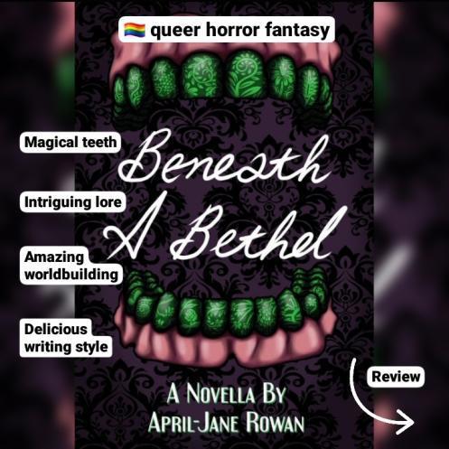 April-Jane Rowan’s BENEATH A BETHEL is a queer horror fantasy novella, set in a frigid fantasy land with non-humans (they got fur & tails). Upon coming of age, their teeth are pulled & they get magical dentures instead. The story is very graphic & has amazing worldbuilding (like tea that makes you feel emotions). Also, April’s writing style is just beautiful ♡♡