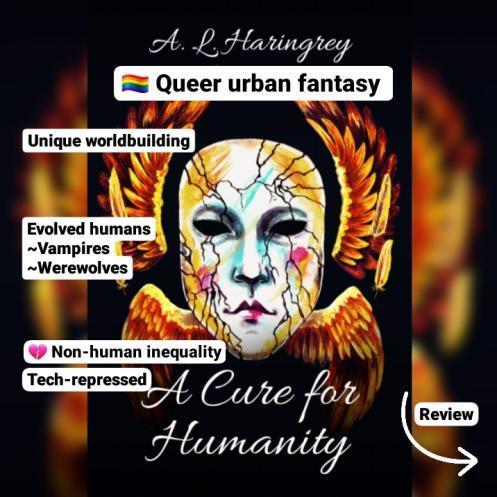 A.L. Haringrey’s A CURE FOR HUMANITY is another queer urban fantasy, where some humans have evolved into vampires and werewolves, but the humans are suppressing them with (gruesome) tech. It’s a very inventive take and features some really nice worldbuilding (like candied bloodclots for the vamps). Also fun fact: this story used to be on wattpad too
