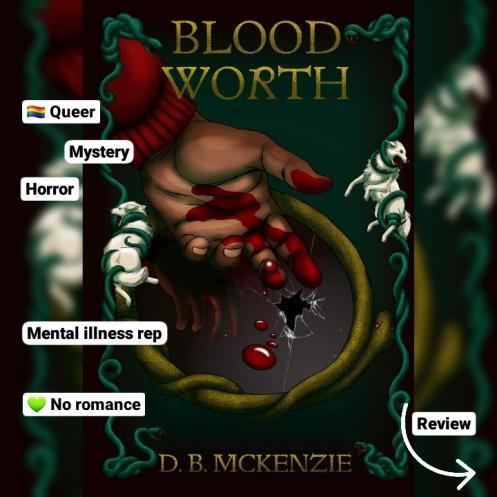 D.B McKenzie’s BLOOD WORTH is… a queer mystery urban fantasy… horror? It’s hard to put this one in a genre box. I had expected there to be vampires but NOPE, this book is a lot more unique and just so good. Another great mental illness rep and what I also loved: no romance! Just an awesome friendship