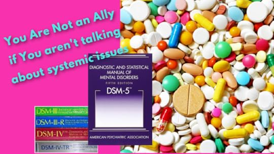 If you are not advocating for reform in the mental health field to end conflicts of interest from pharmaceutical companies, then you are not an ally. I’d rather you say absolutely nothing than use the mentally ill to virtue signal when you actually don’t care. And stop telling people to go to therapy! Y’all are pushing people into a system that is likely to harm and otherize them.