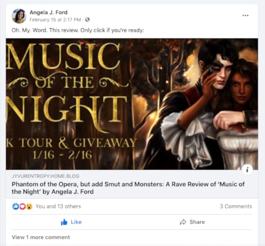 I read ‘Music of the Night’ for a Silver Dagger blog tour, and WOW! Angela J. Ford is my new favorite romance author