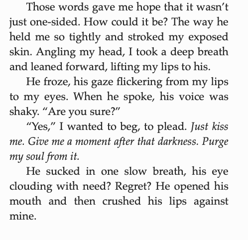 A romance needs a great first kiss scene, but not every romance novel pulls it off. Ford pulls it off so well. We can feel the sexual tension, the longing, the emotion flowing between the two of them. It was so masterfully done and gave me all the feels!