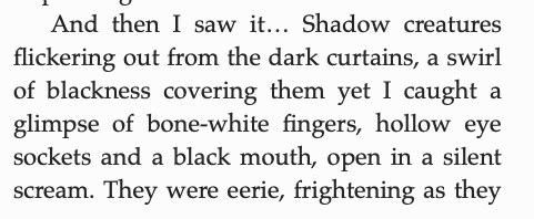 Lastly, I want to rave about the monsters in this book. The addition of monsters brought the gothic vibe up to a whole other level. The monsters were incredibly creepy. Each time they are described, it gave me such a visceral reaction, such shivers.